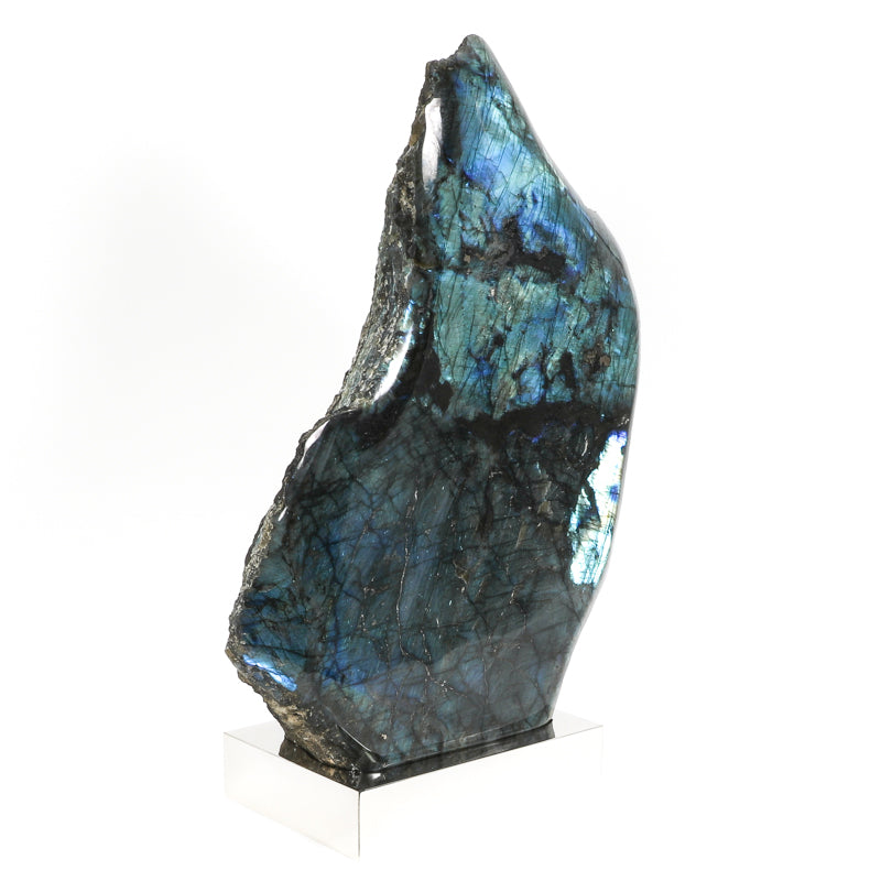 Labradorite formed through the slow crystallization of feldspar within large igneous intrusions during the Precambrian era, roughly 1-4 billion years ago. The mineral developed as magma cooled gradually within massive anorthosite complexes—geological formations composed almost entirely of feldspar minerals.